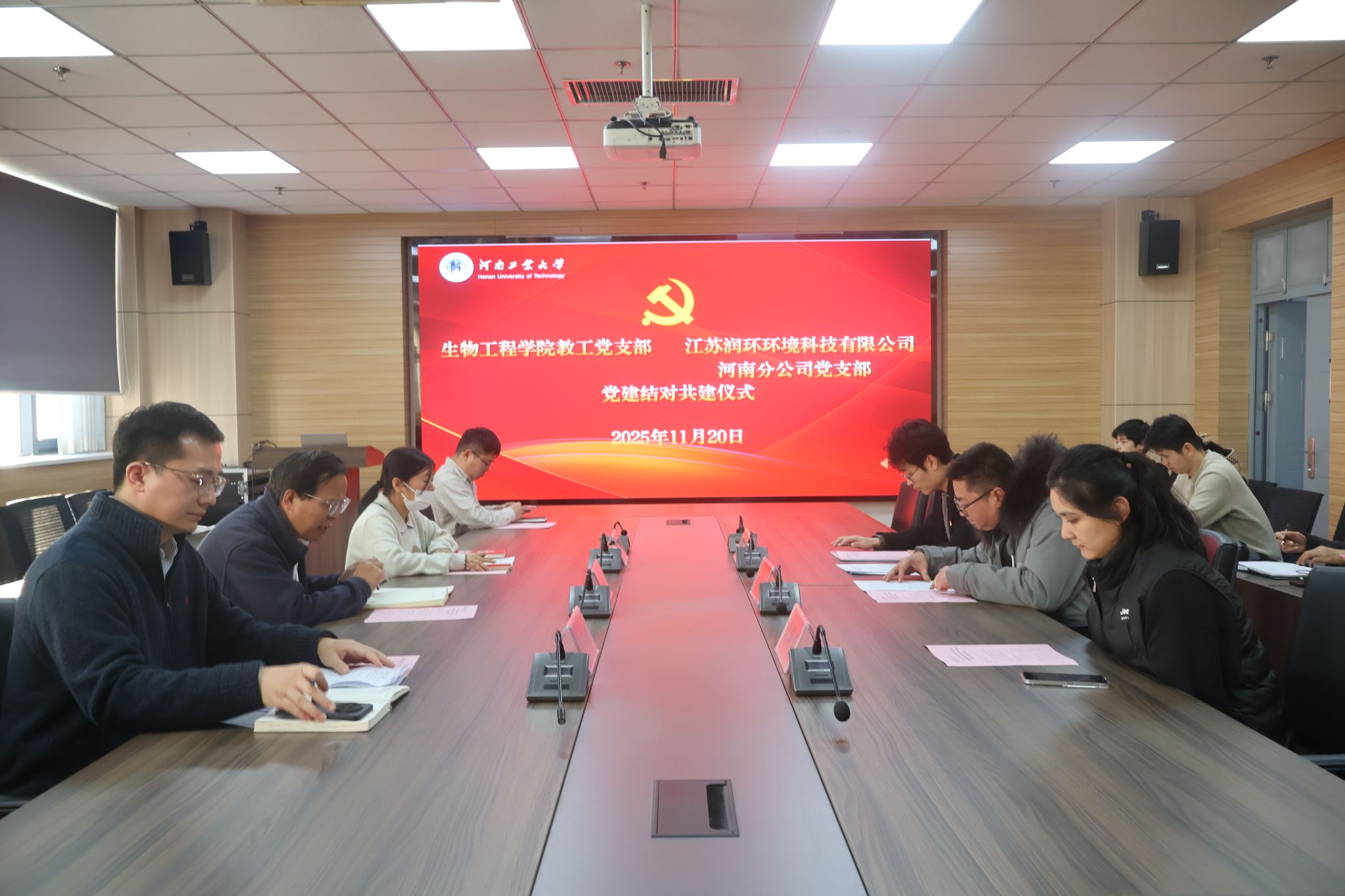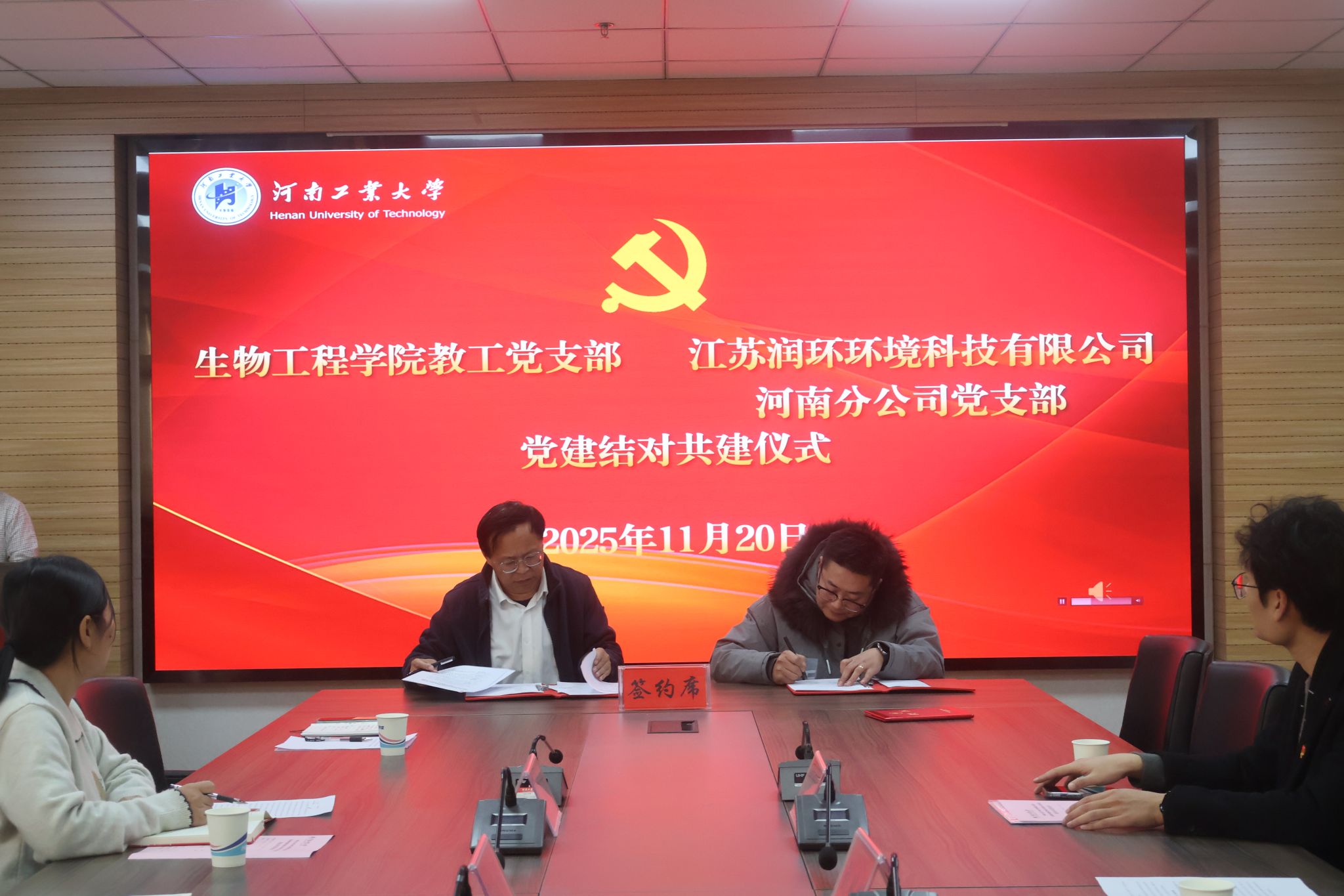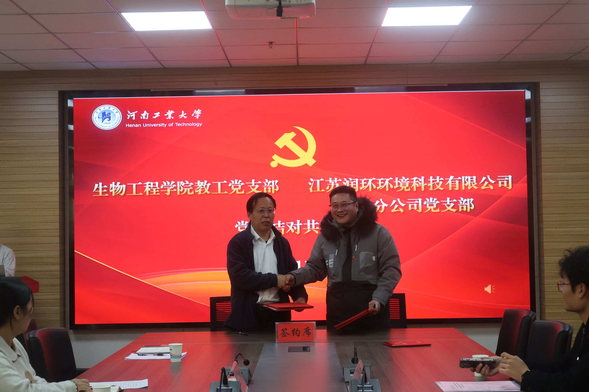 教工党支部与江苏润环环境科技有限公司河南分公司党支部在惟德楼1313会议室举行结对共建签约仪式。我校生工2001级校友、江苏润环环境科技有限公司河南分公司总经理刘从彬,性爱网