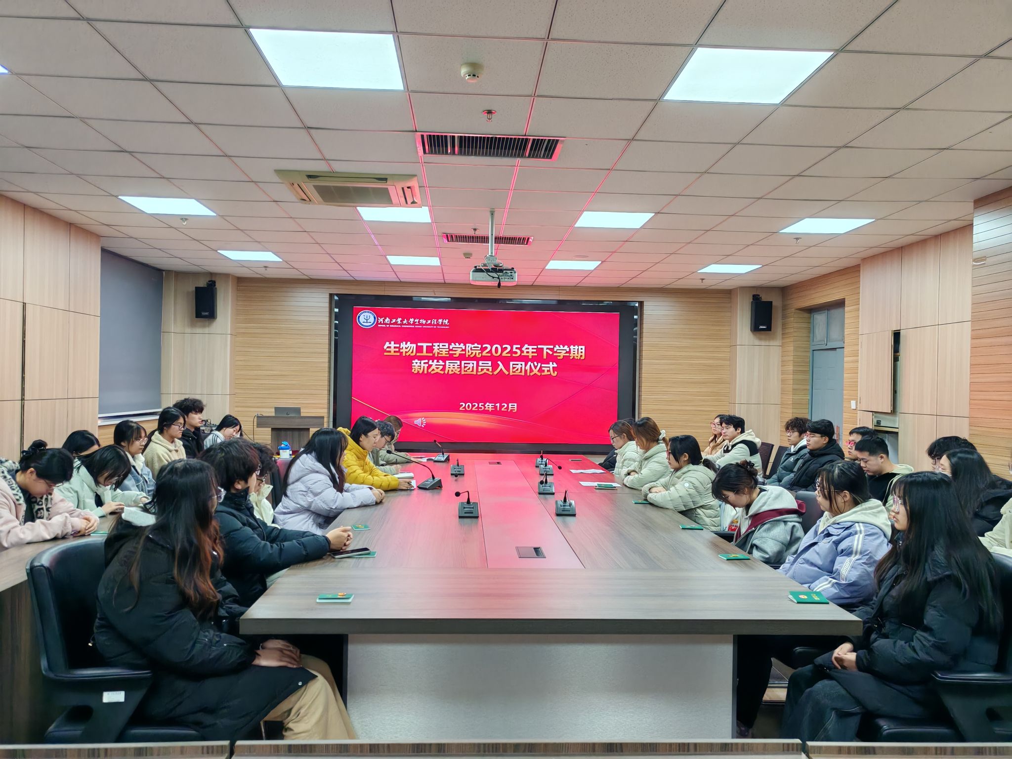 在惟德楼1313会议室举办2025年下半年新发展团员入团仪式。学院团委书记杨雨薇、22级辅导员孟建峰、新发展团员及老团员代表共同参加了本次仪式。