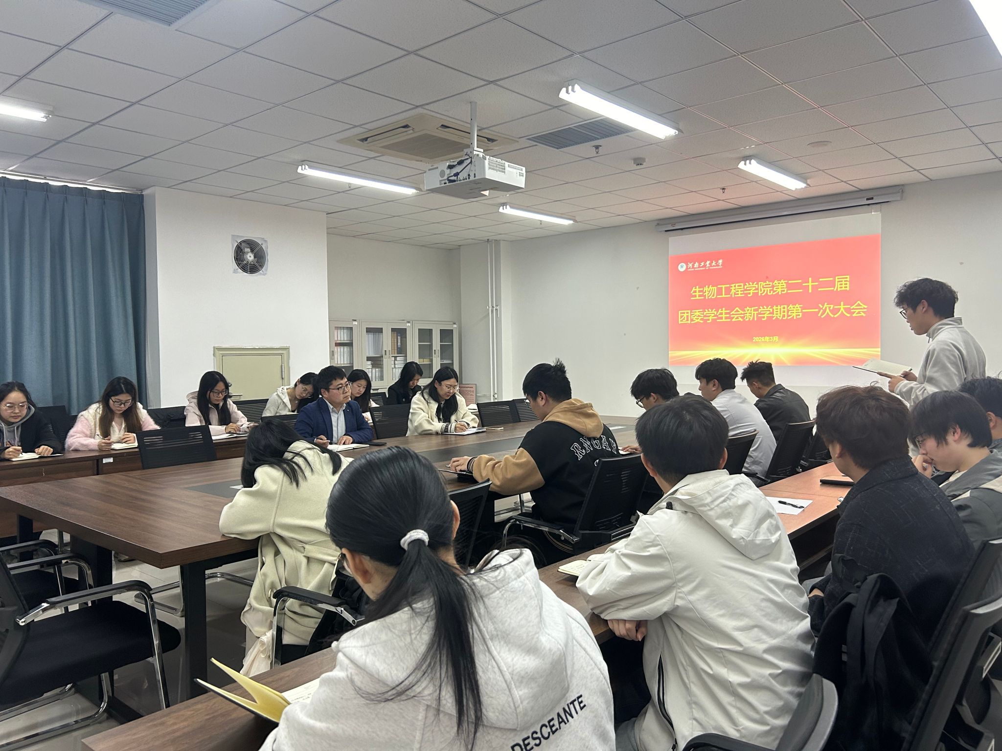 会议伊始,学生会各部门负责人依次汇报了近期工作完成情况,全面梳理了工作中的亮点与不足,并围绕新学期工作重点,明确了各部门的具体规划与实施路径。汇报过程中,各部门内容详实、重点突出,充分展现了学生会干部扎实务实的工作作风、昂扬向上的精神面貌以及履职尽责的责任担当。