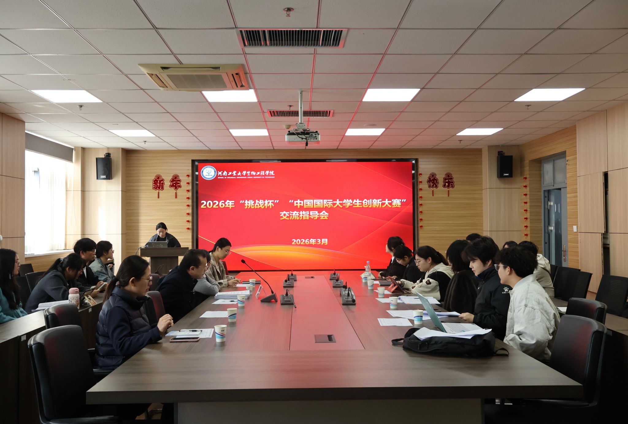 在惟德楼1313会议室召开“挑战杯”和“中国国际大学生创新大赛”交流指导会。会议特邀河南科技大学许军教授作专题分享与现场指导,学院党委书记卫红伟、副书记蔡永平,指导教师代表及各项目负责人参加会议。